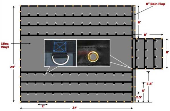 3 PIECES / 18 OZ x VINYL / 24′ 20 X 18 X 20 – 8′ FLAP